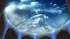 天幕技术的特点是充分利用了建筑空间的顶部,使屋顶成为具有大幕的展示效果。使屋顶下的所有观众都可以体验到虚拟的视觉、听觉感受。